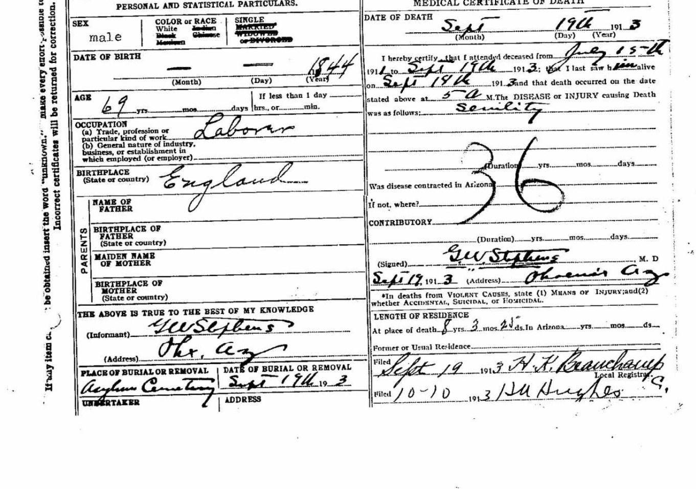 Death: 28 May 1916 – Prescott, Yavapai, Arizona